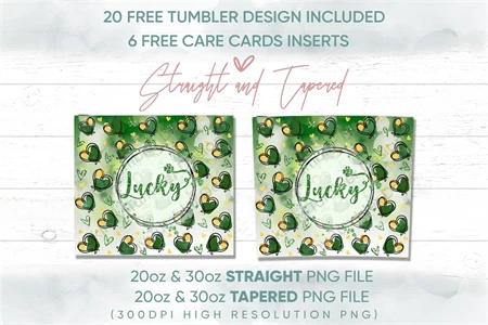 20oz Lucky Skinny Tumbler Sublimation Png, Straight Tapered
