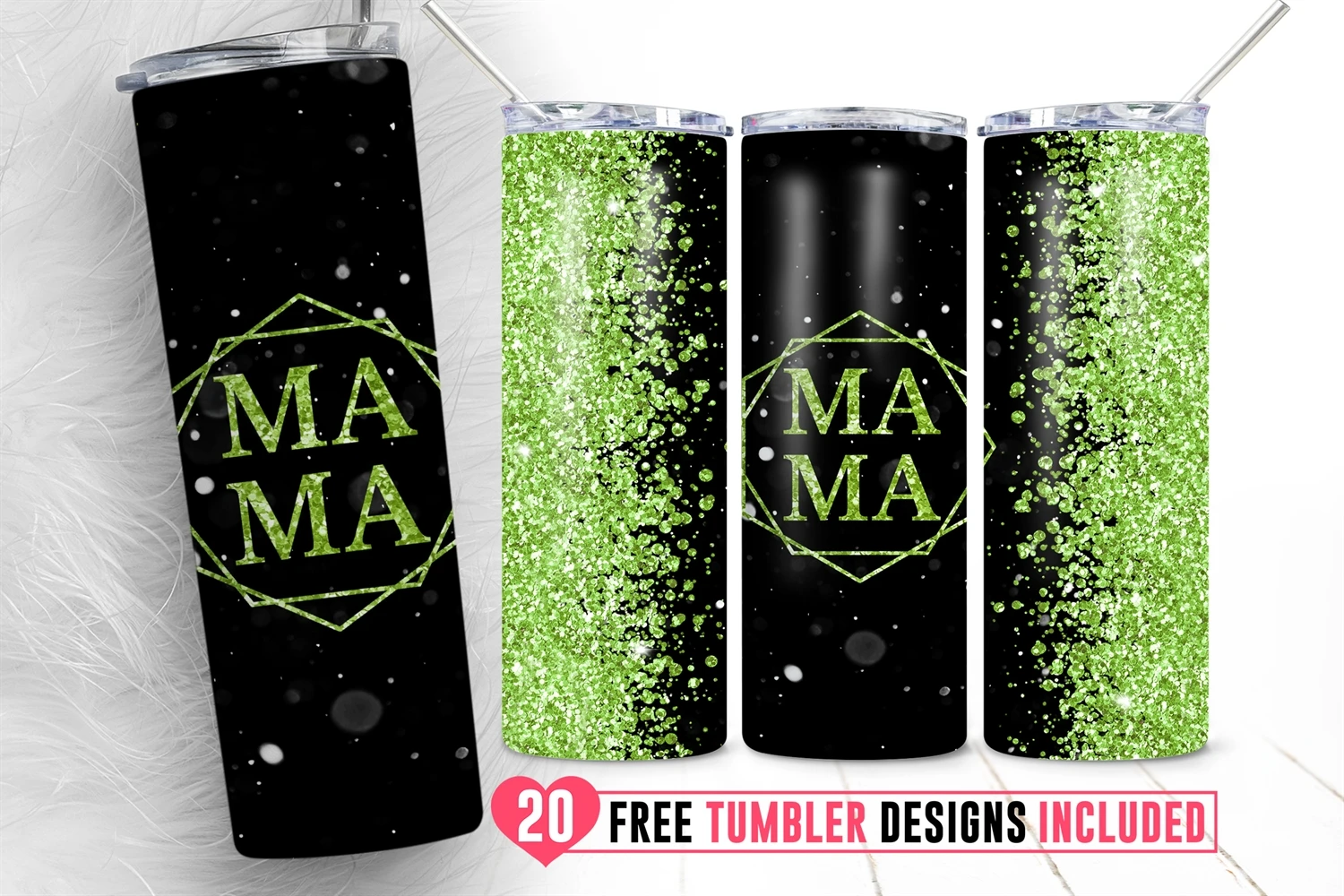 20oz Mama Glitter Skinny Tumbler Sublimation Png, Mom Life