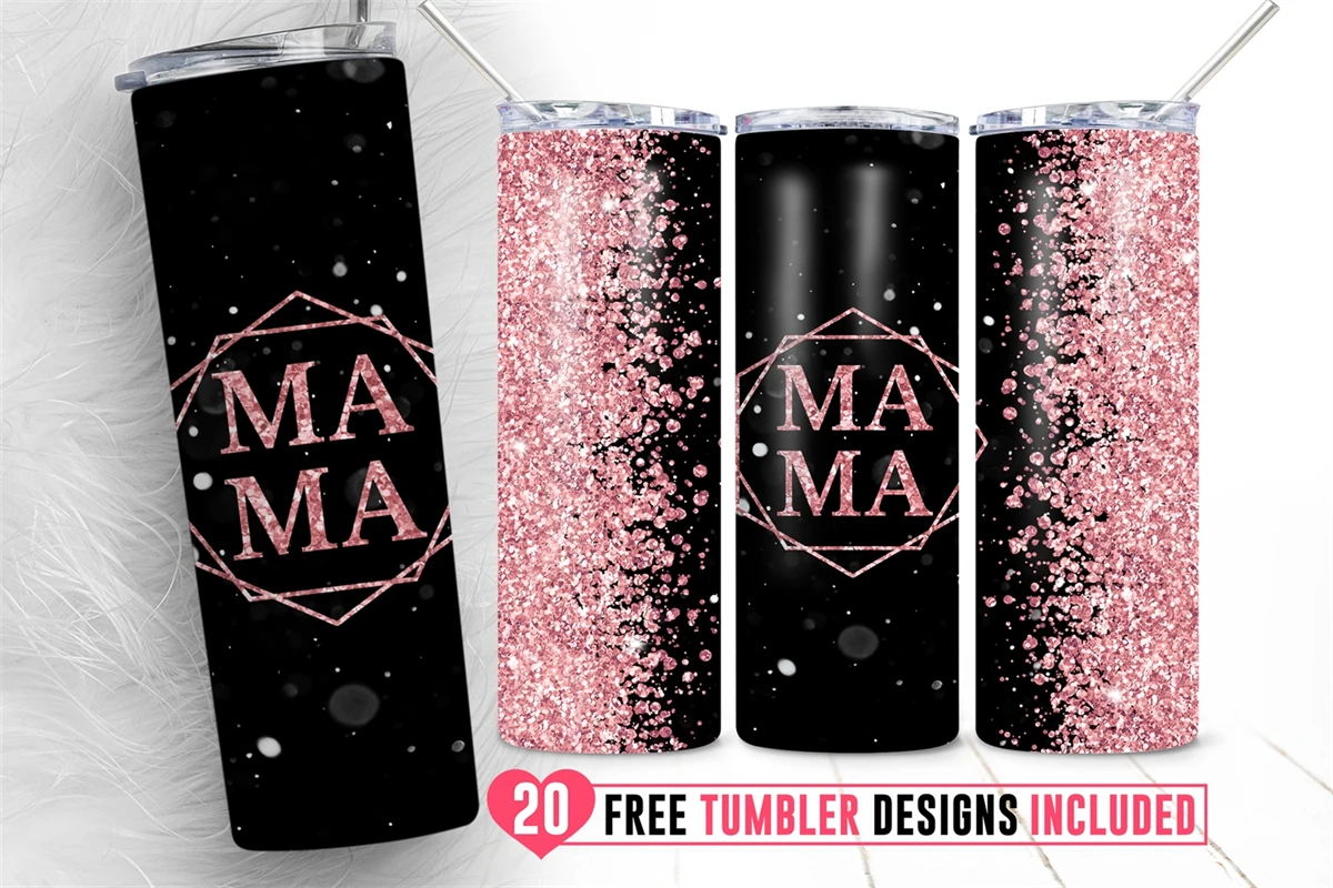20oz Mama Glitter Skinny Tumbler Sublimation Png, Mother Day