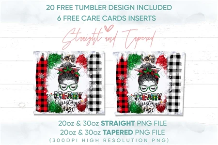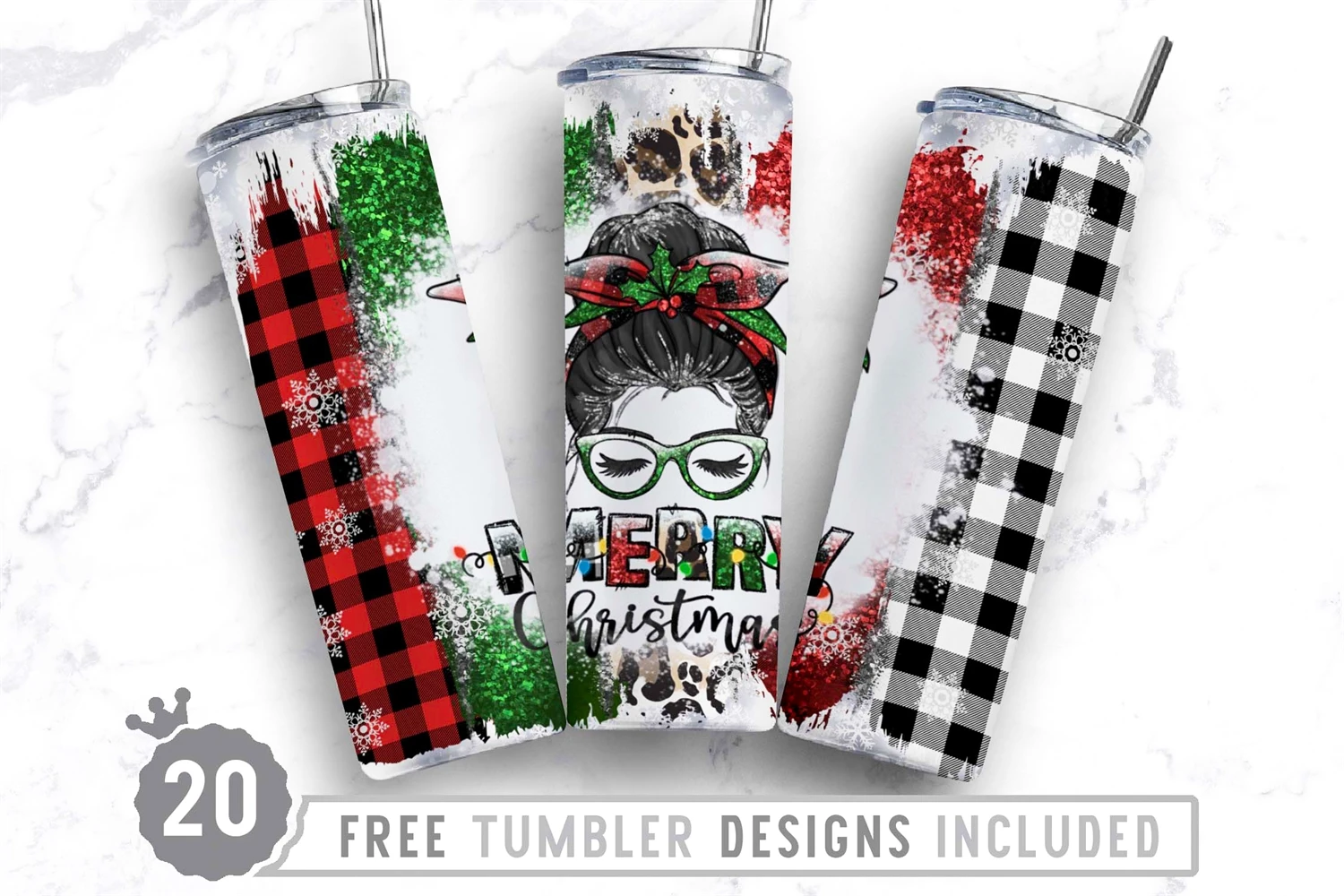 20oz Merry Christmas Messy Bun Skinny Tumbler Sublimation