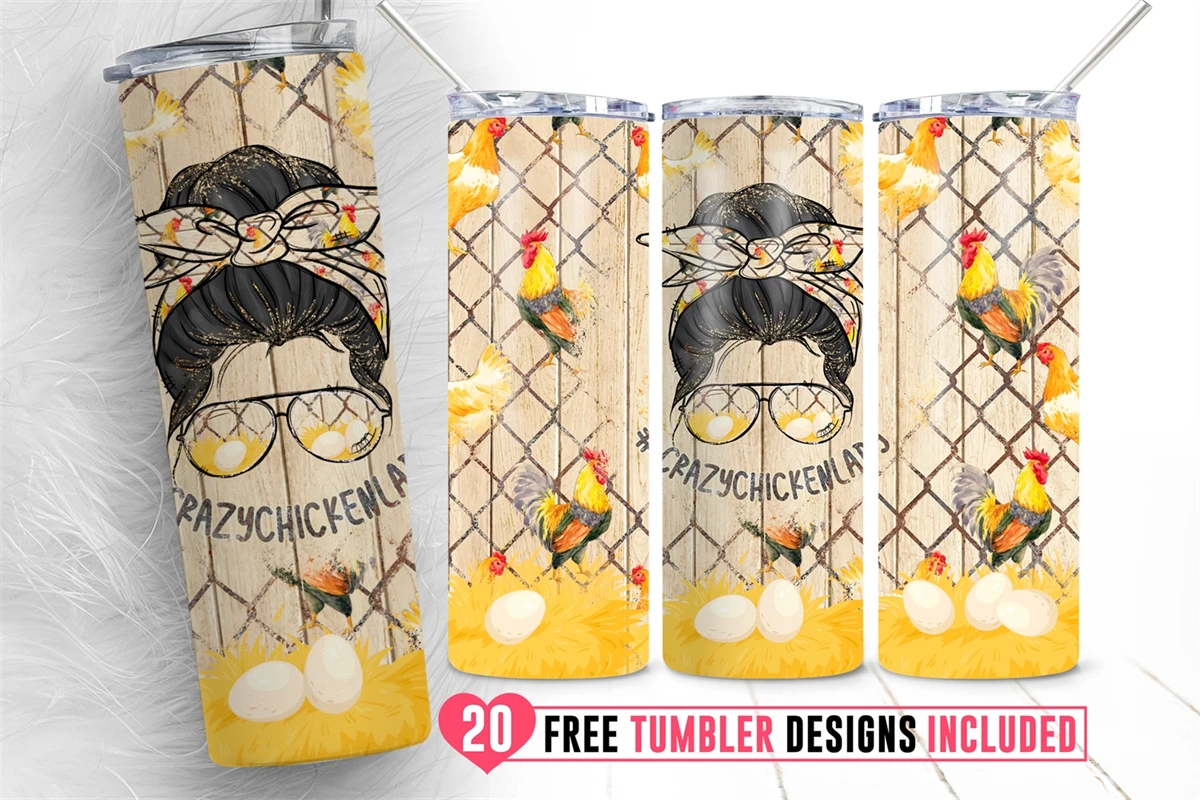 20oz Messy Bun Crazy Chicken Lady Skinny Tumbler Sublimation
