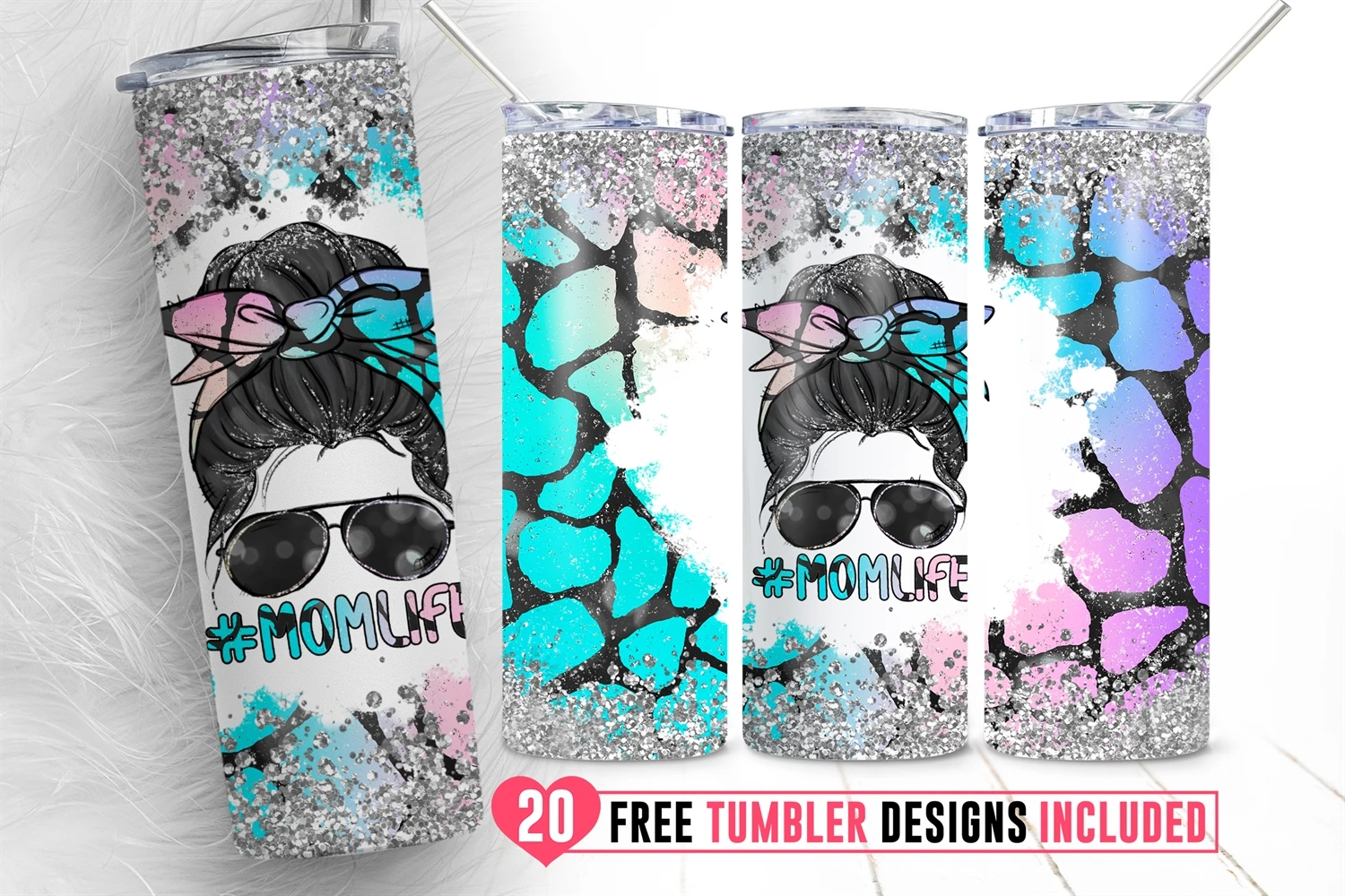 20oz Messy Bun Mom Life Skinny Tumbler Sublimation Png, Mama