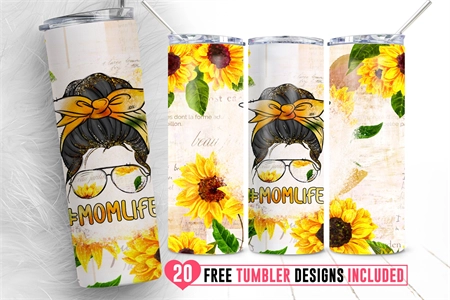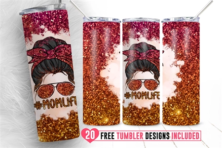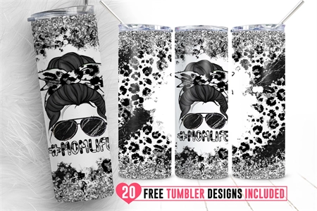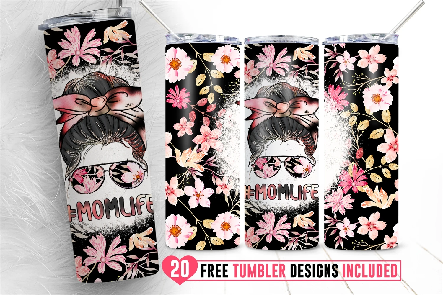 20oz Messy Bun Mom Life Skinny Tumbler Sublimation Png, Mama