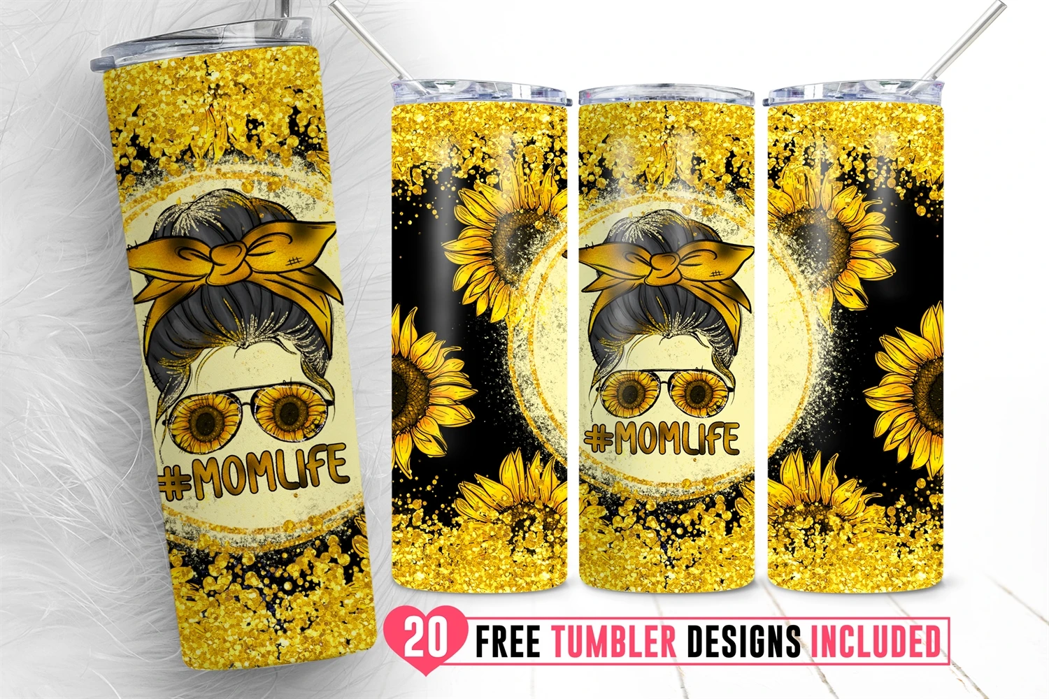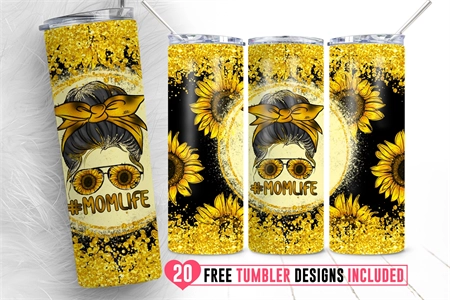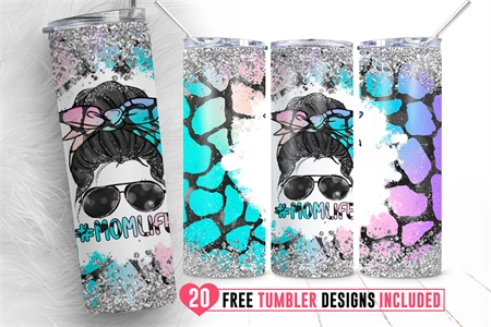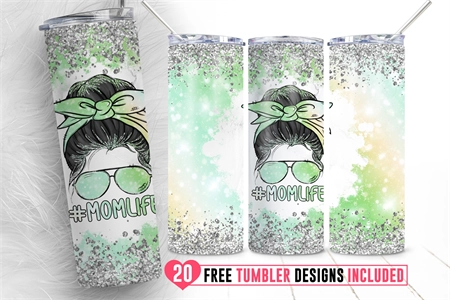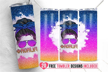 20oz Messy Bun Mom Life Skinny Tumbler Sublimation Png, Mama