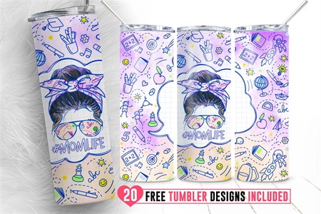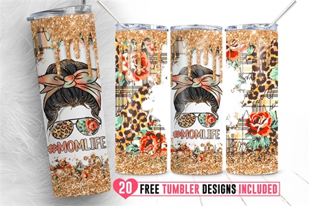 20oz Messy Bun Mom Life Skinny Tumbler Sublimation Png, Mama