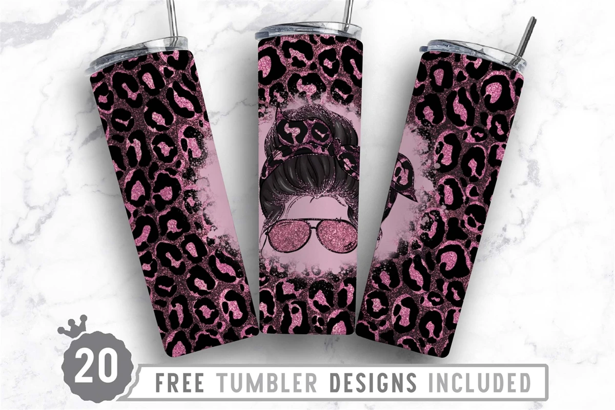 20oz Messy Bun Skinny Tumbler Sublimation, Straight Tapered
