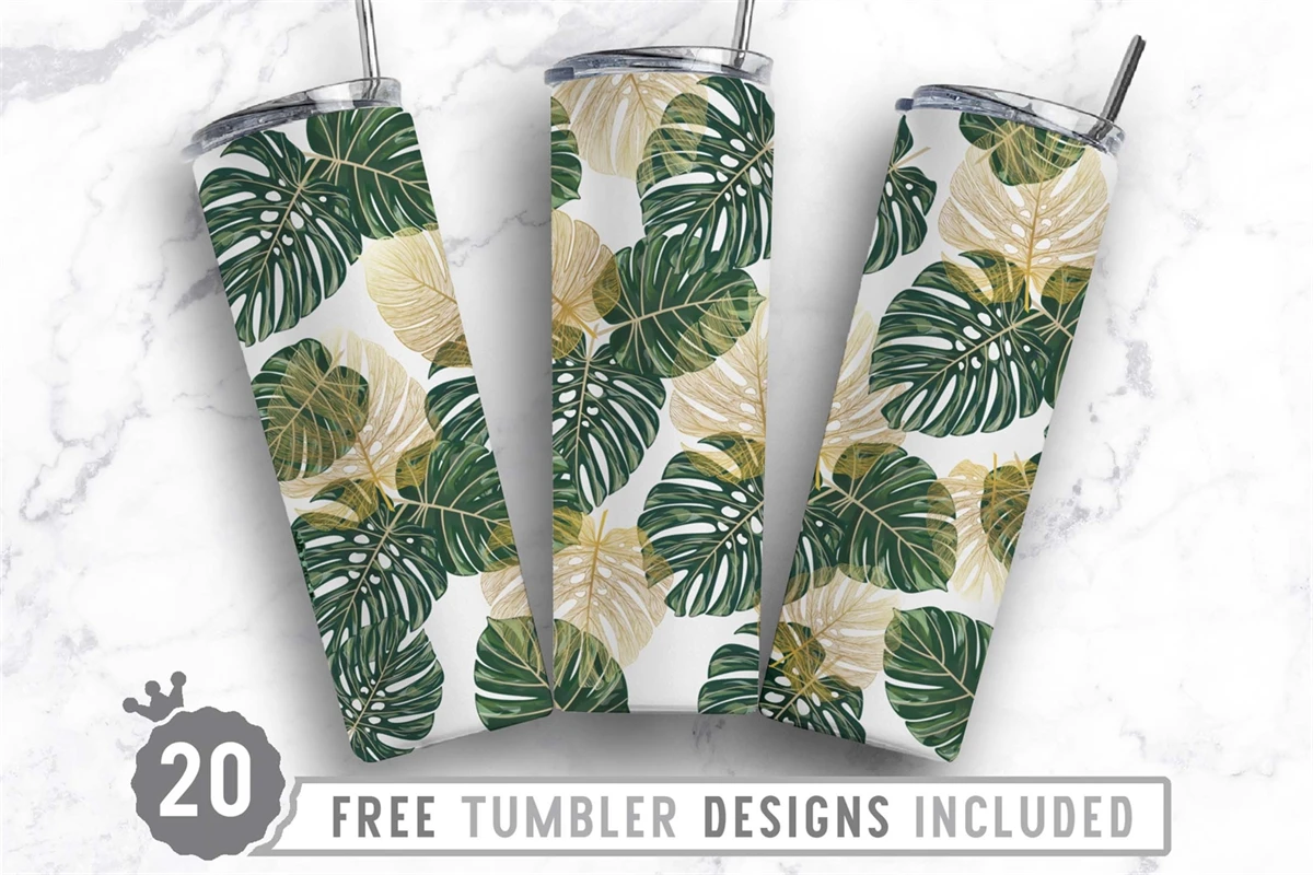 20oz Monstera Skinny Tumbler Sublimation, Straight Tapered