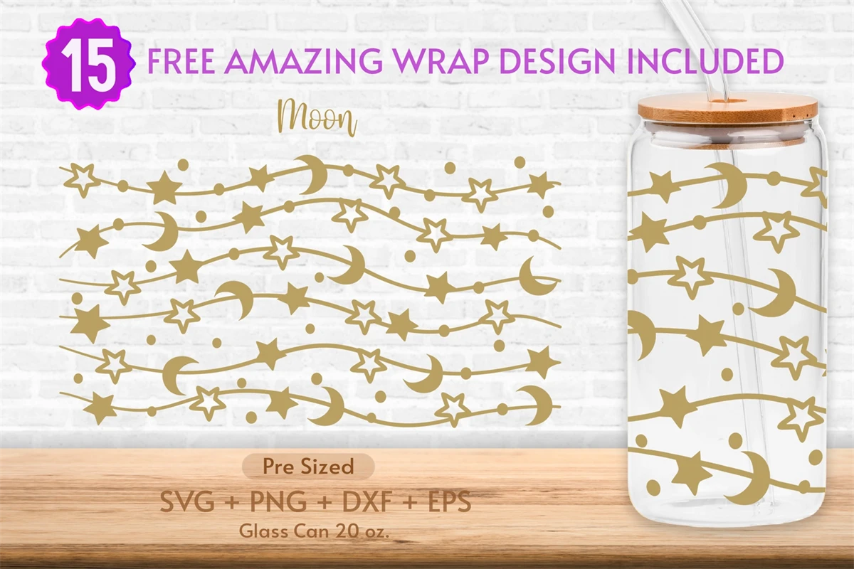 20oz Moon Libbey Glass Can Svg, Glass Can Full Wrap Svg