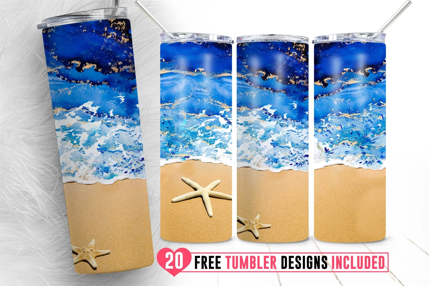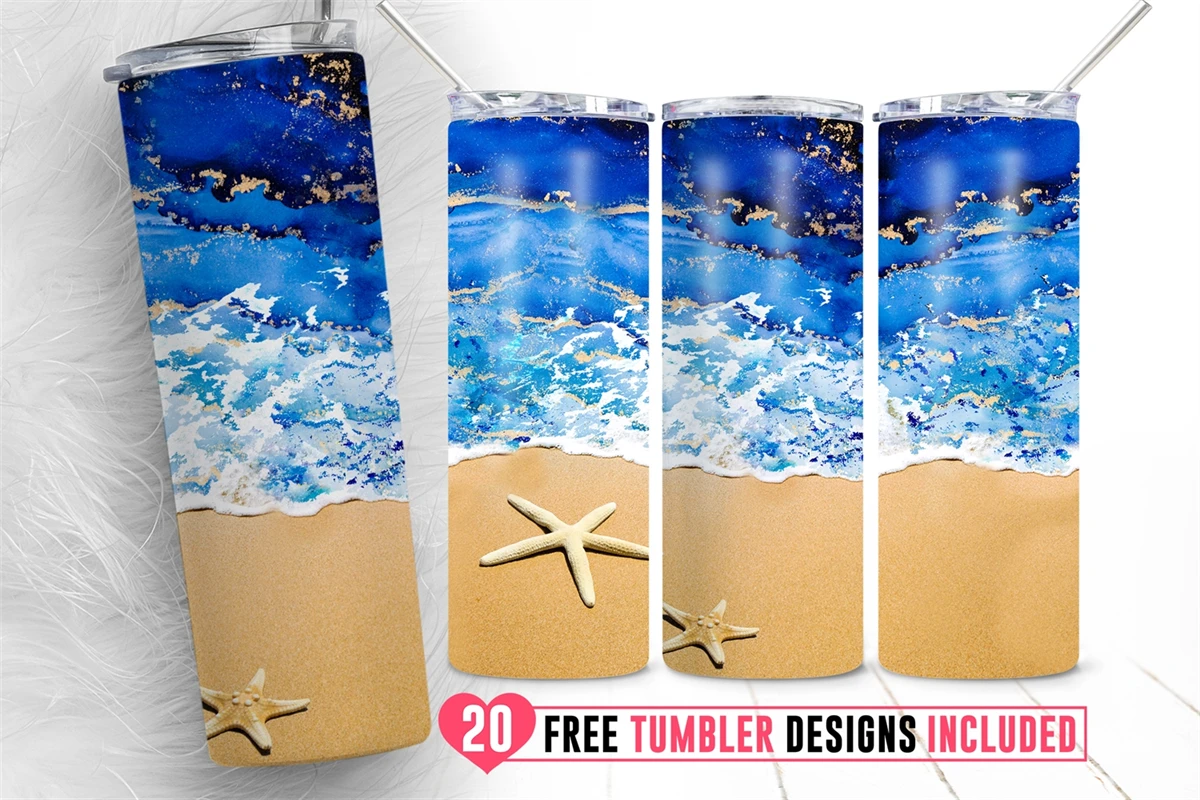 20oz Ocean Glitter Skinny Tumbler Sublimation Summer Sunset