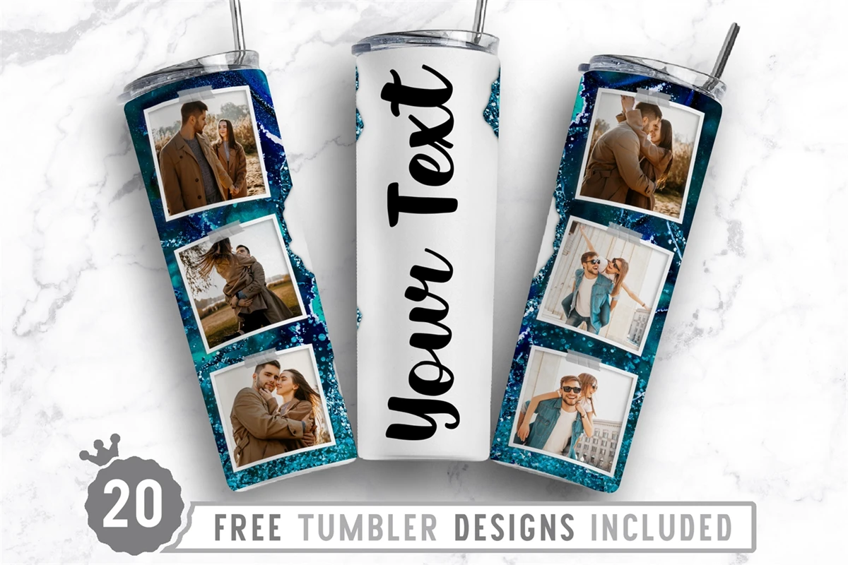 20oz Photo Frame Mama Skinny Tumbler Sublimation Png Collage