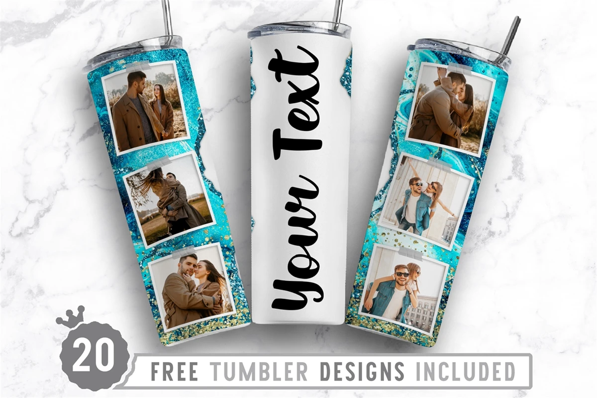 20oz Photo Frame Mama Skinny Tumbler Sublimation Png Collage