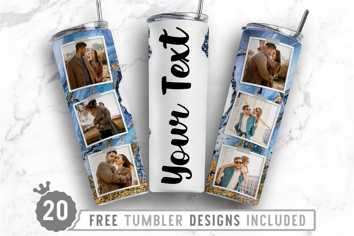 20oz Photo Frame Mama Skinny Tumbler Sublimation Png Collage