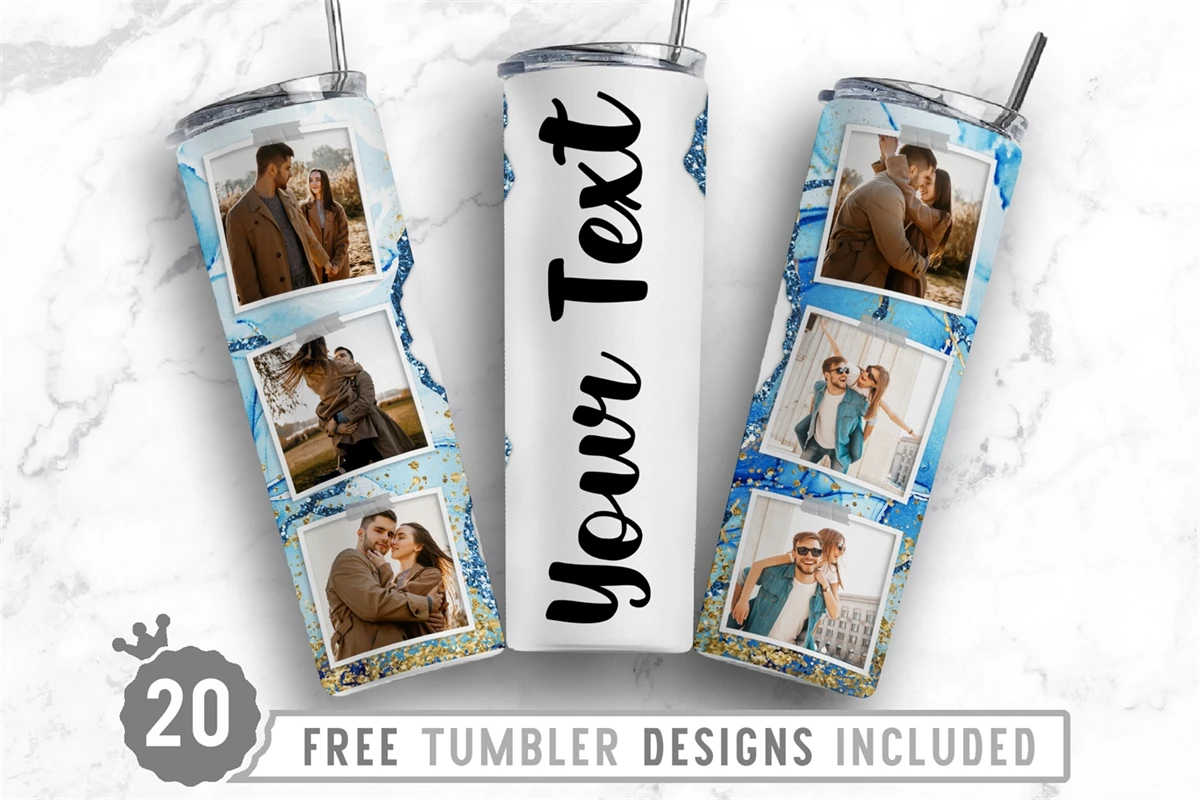 20oz Photo Frame Mama Skinny Tumbler Sublimation Png Collage