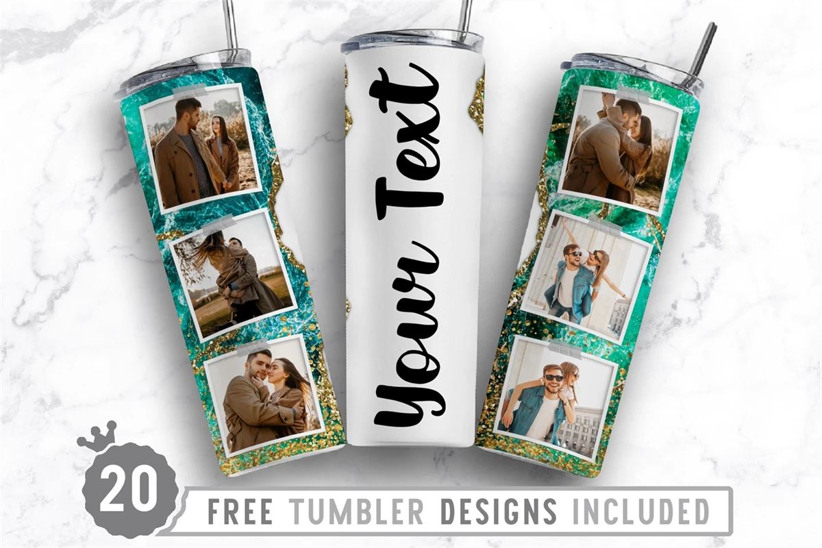 20oz Photo Frame Mama Skinny Tumbler Sublimation Png Collage