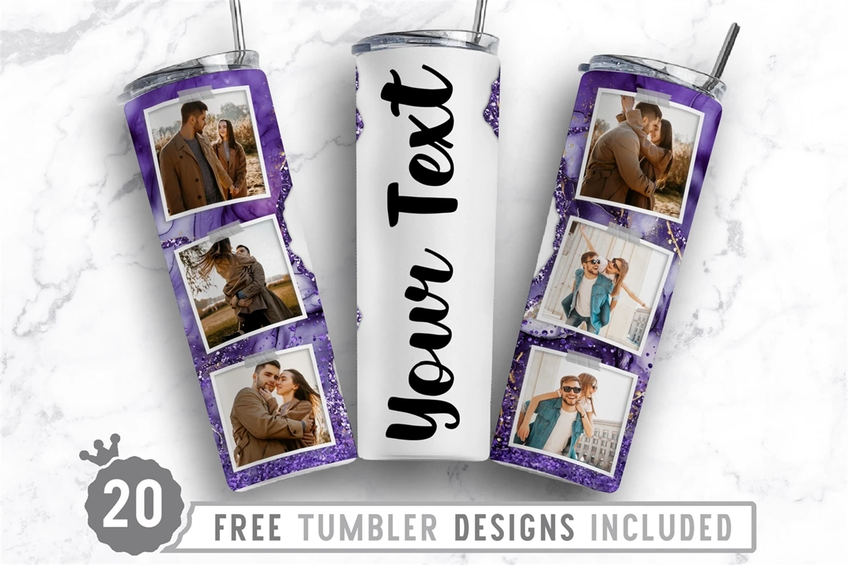 20oz Photo Frame Mama Skinny Tumbler Sublimation Png Collage