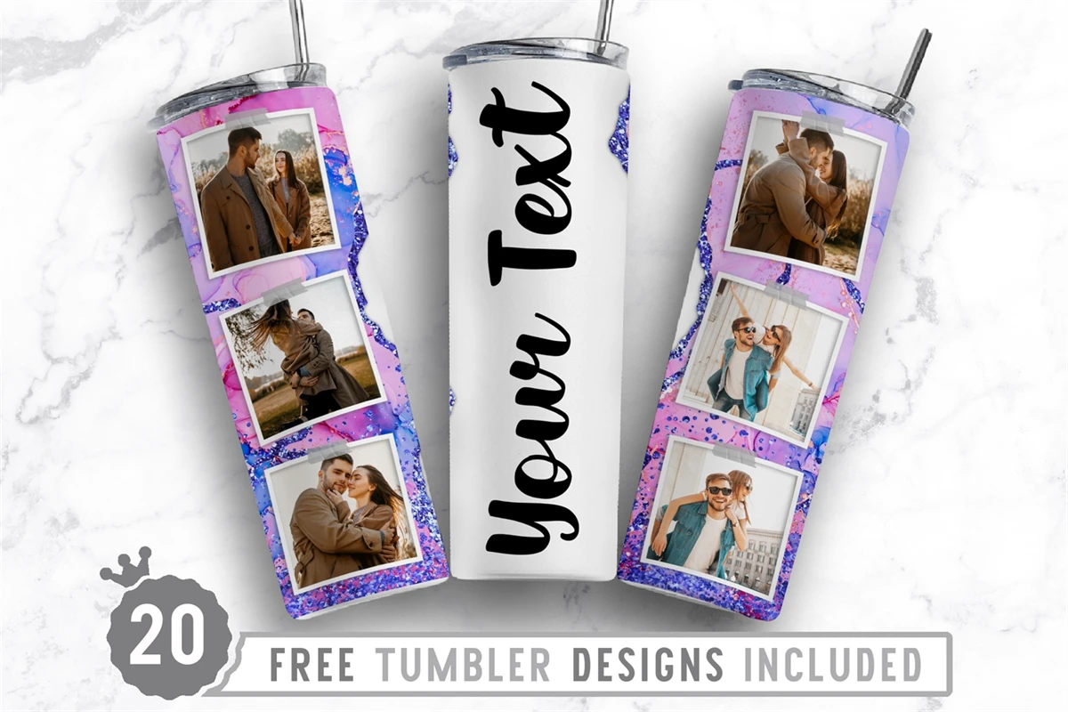 20oz Photo Frame Mama Skinny Tumbler Sublimation Png Collage