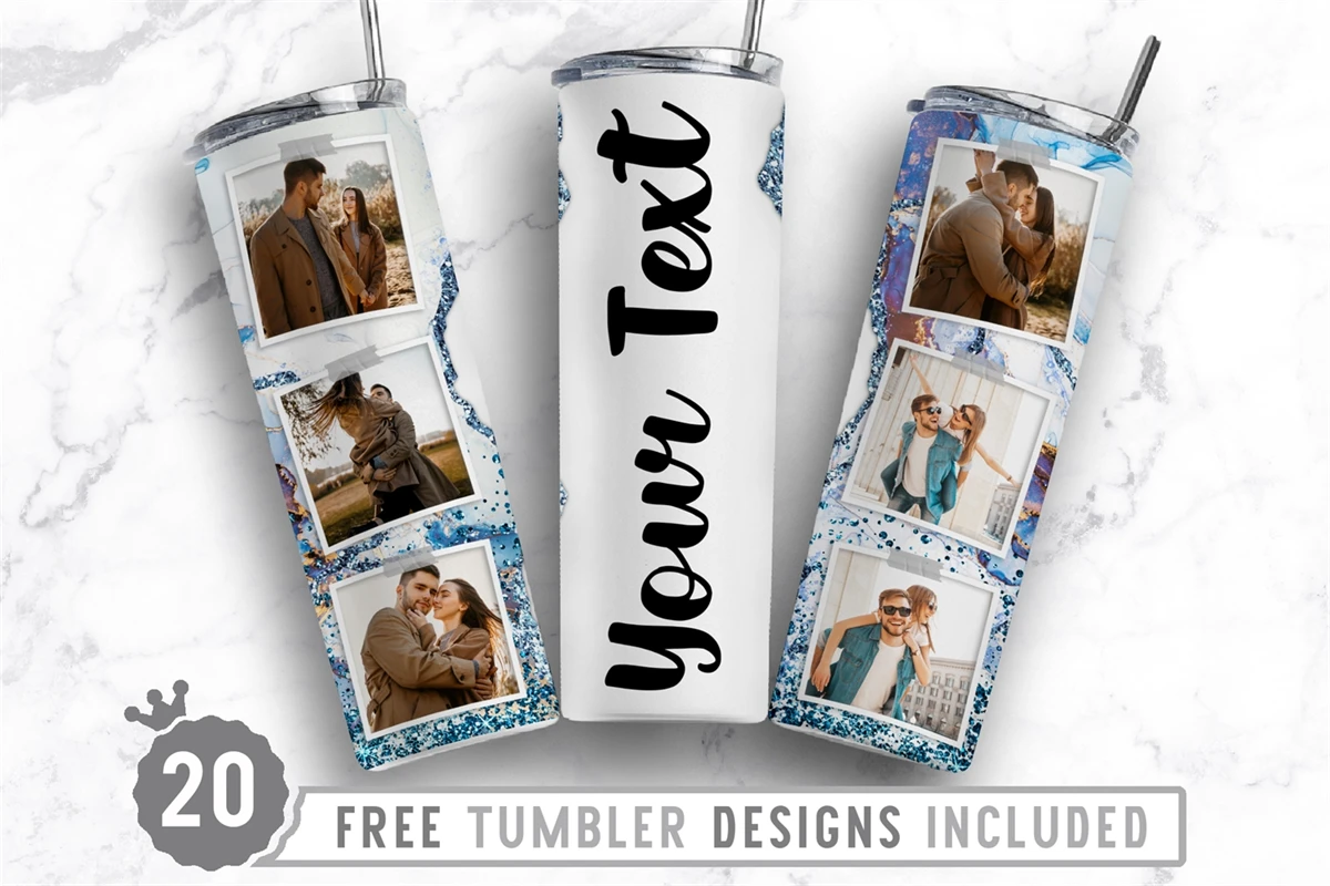 20oz Photo Frame Mama Skinny Tumbler Sublimation Png Collage