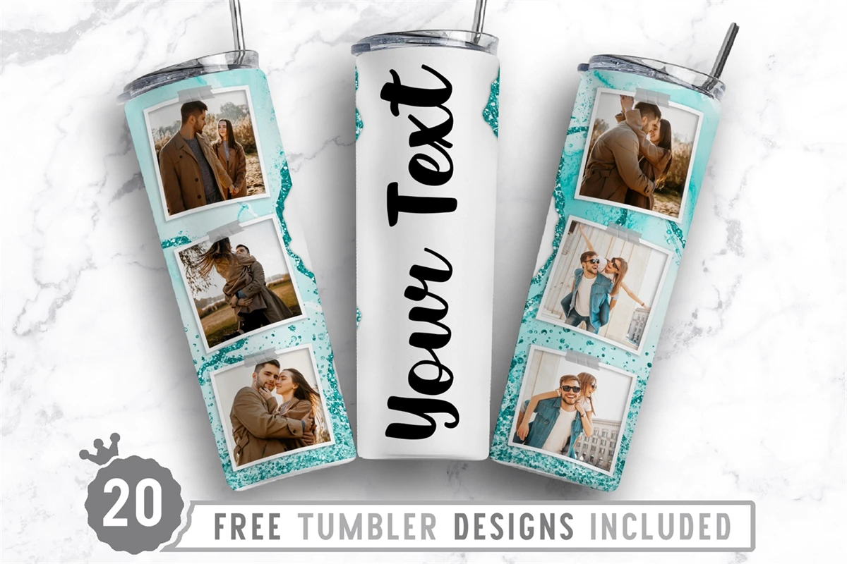20oz Photo Frame Mama Skinny Tumbler Sublimation Png Collage