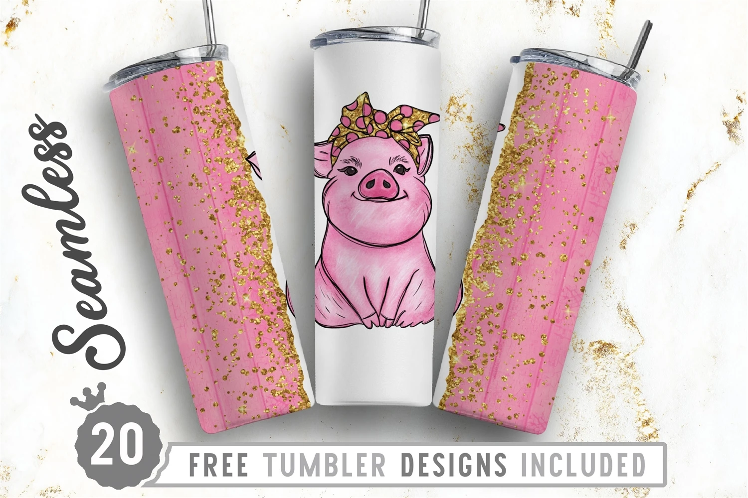20oz Pig Skinny Tumbler Sublimation Png, Pig Png, Farmhouse