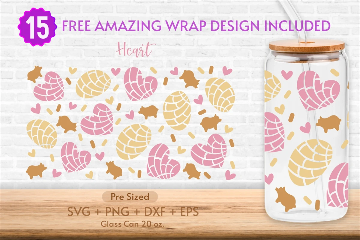 20oz Pigs Hearts Pattern Libbey Glass Can Svg, Pig Glass Can