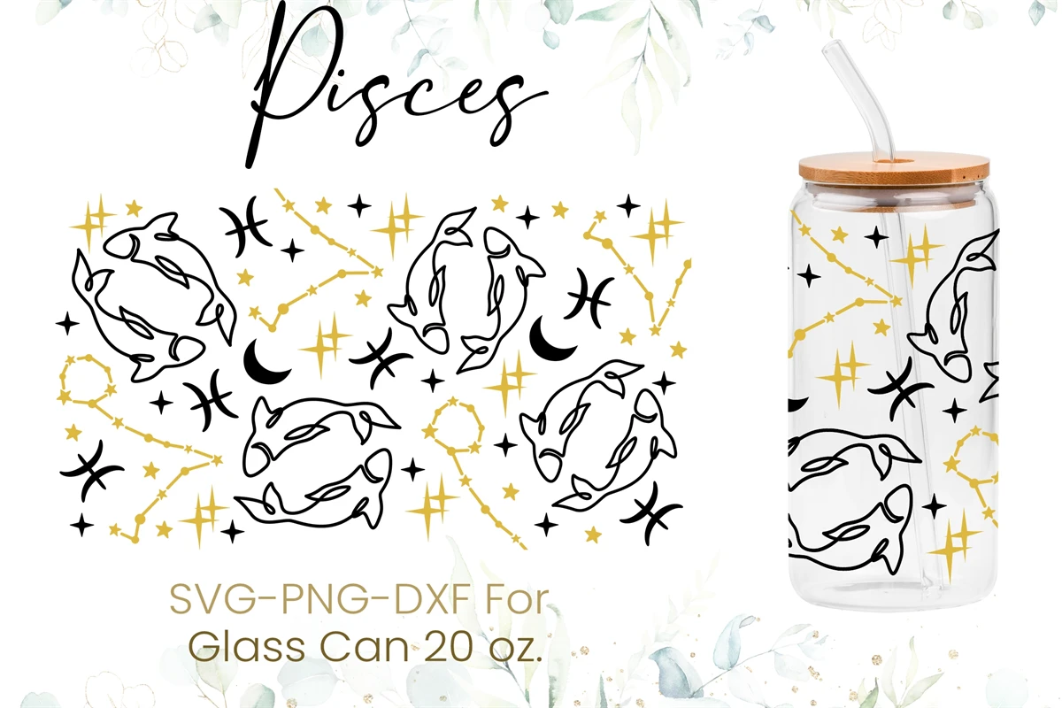 Pisces zodiac glass
