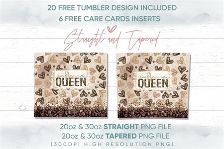 20oz Queen Skinny Tumbler Sublimation Png, Straight Tapered