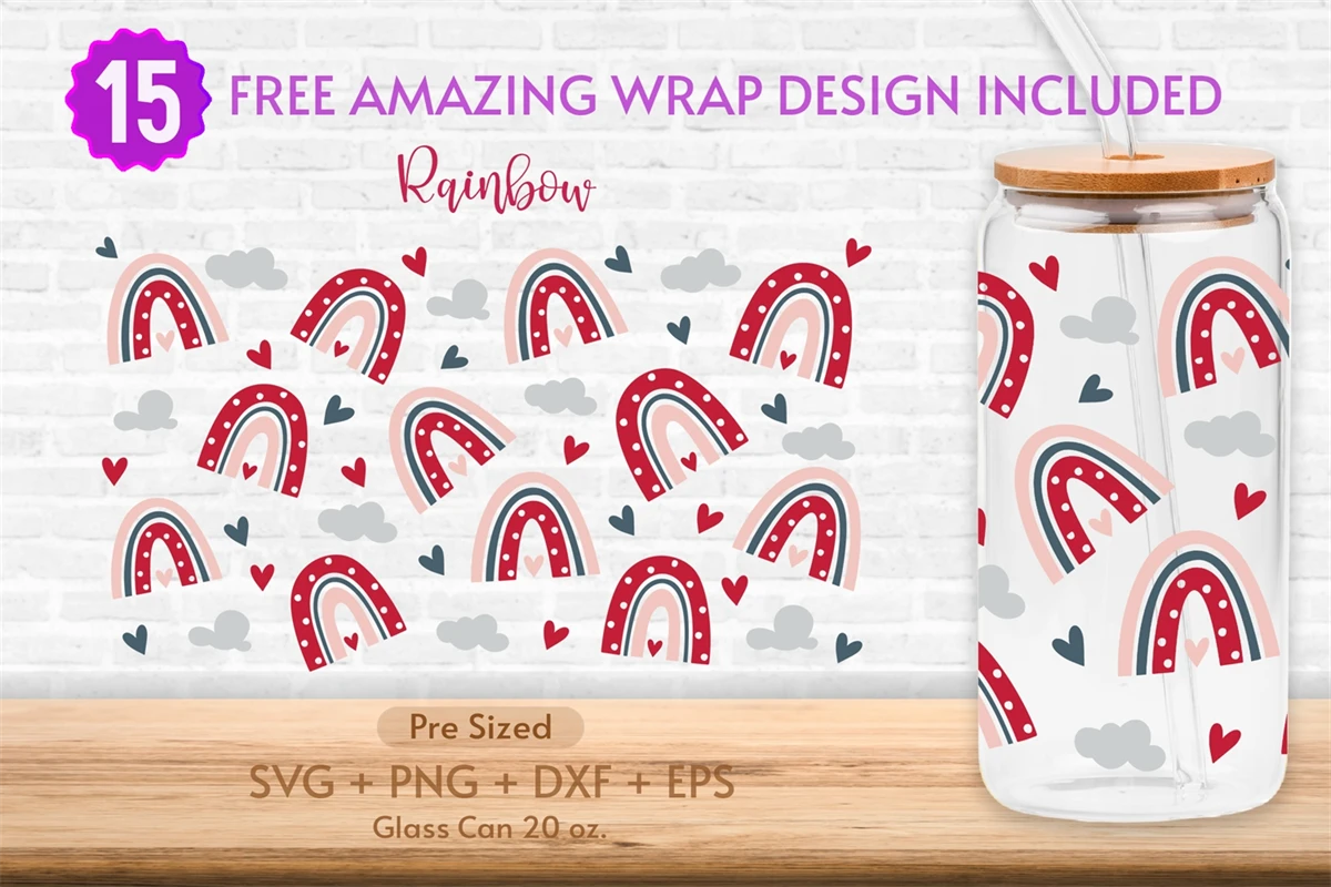 20oz Rainbow Libbey Glass Can Svg, Glass Can Full Wrap Svg,
