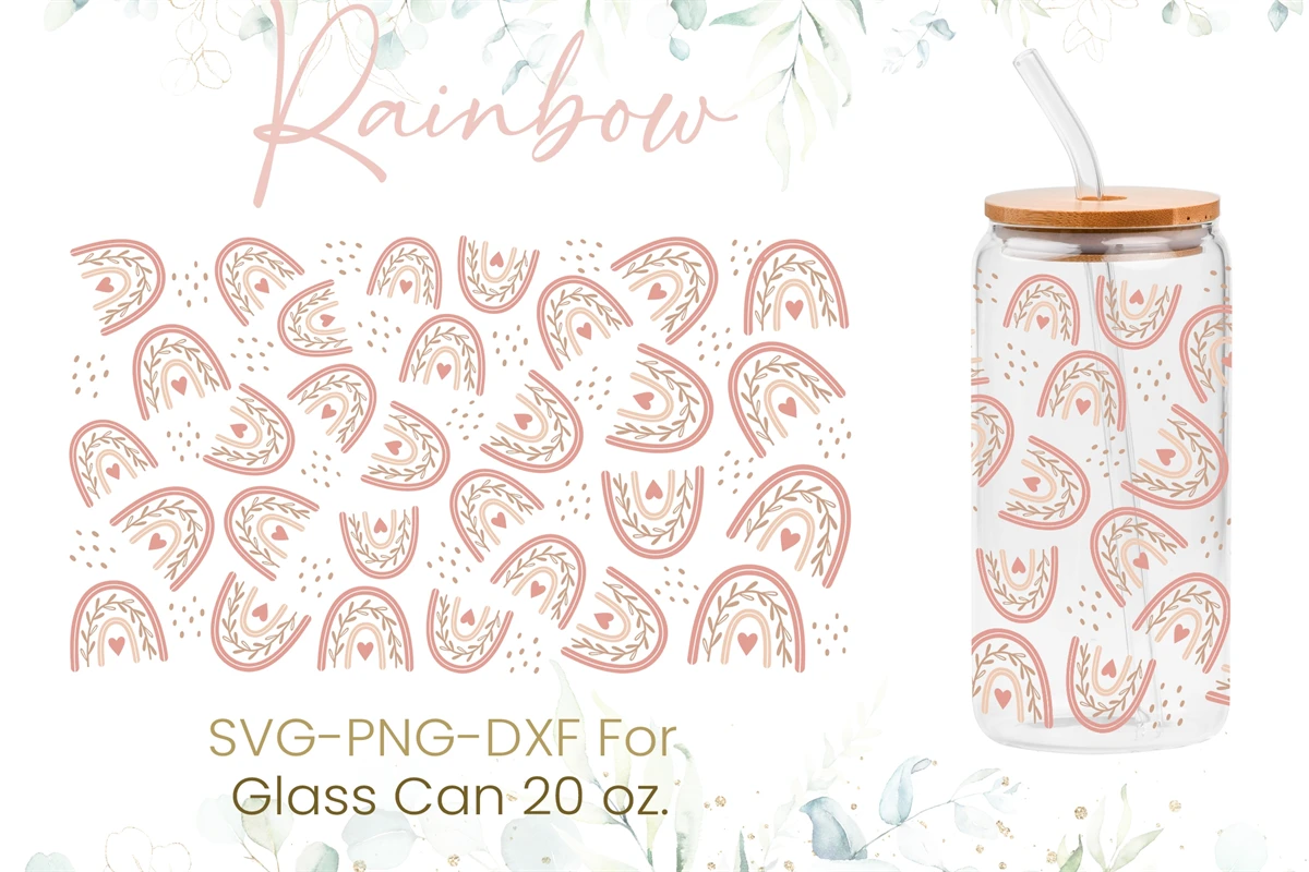 20oz Rainbow Libbey Glass Can Svg, Wild flower, Mother Day