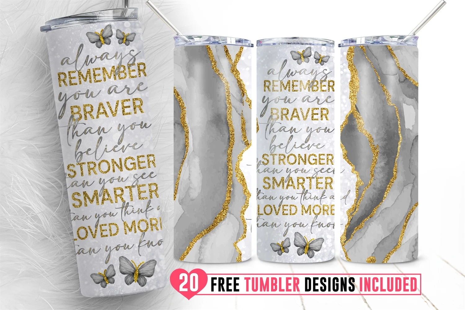 20oz Remember Braver Stronger Skinny Tumbler Sublimation Png