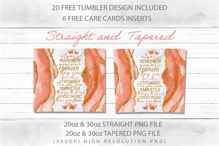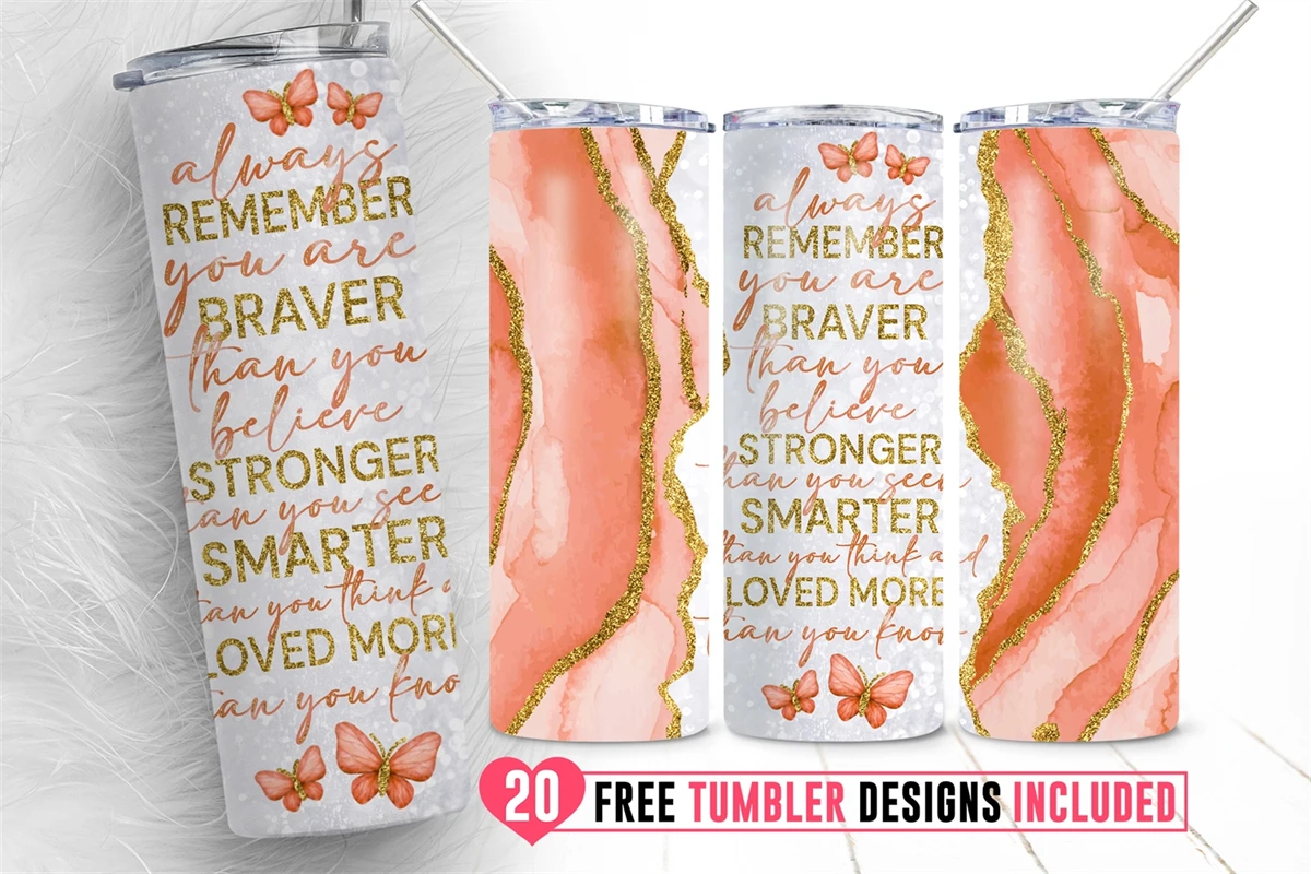 20oz Remember Braver Stronger Skinny Tumbler Sublimation Png