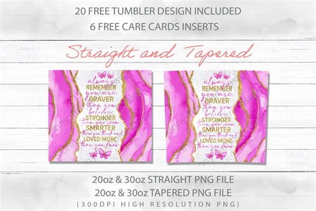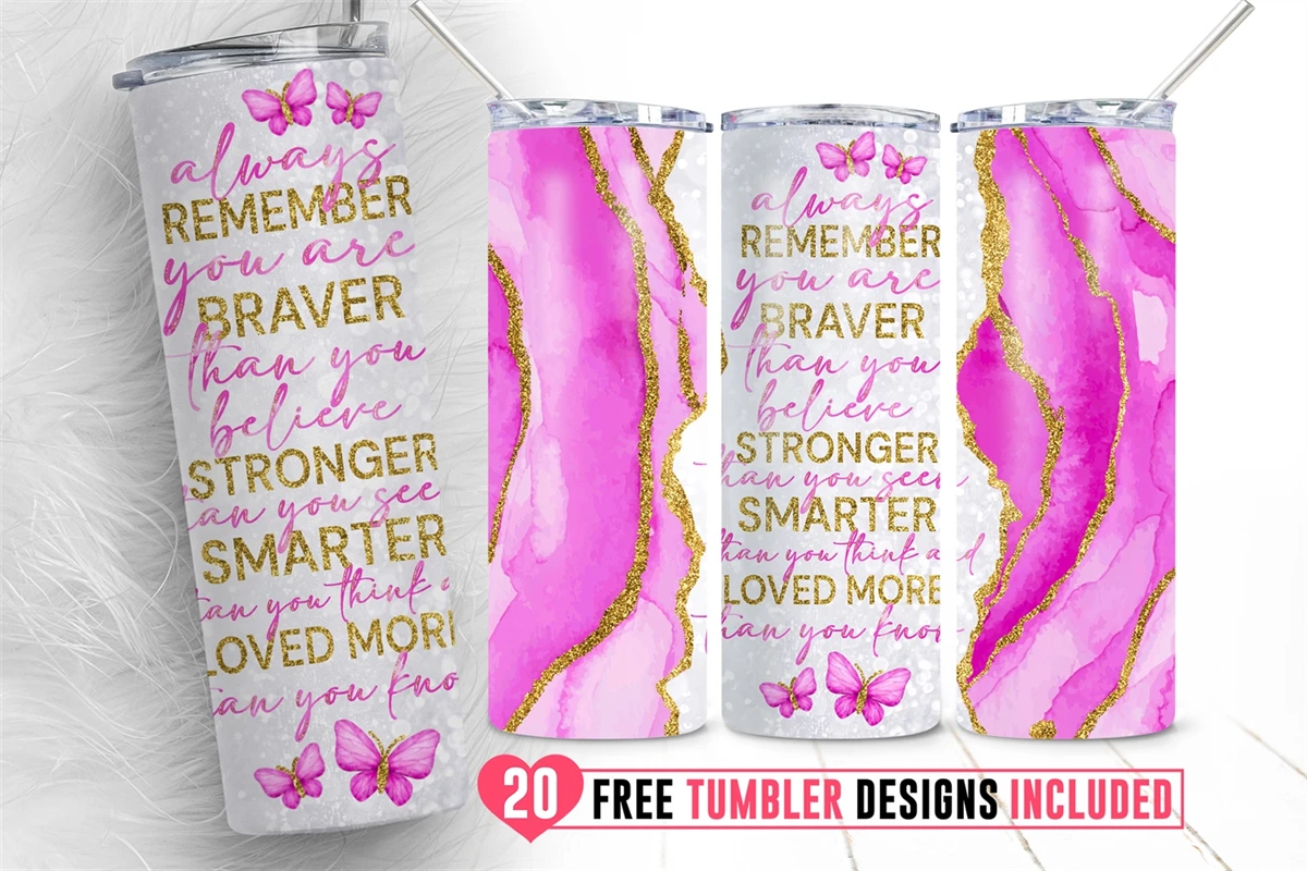 20oz Remember Braver Stronger Skinny Tumbler Sublimation Png