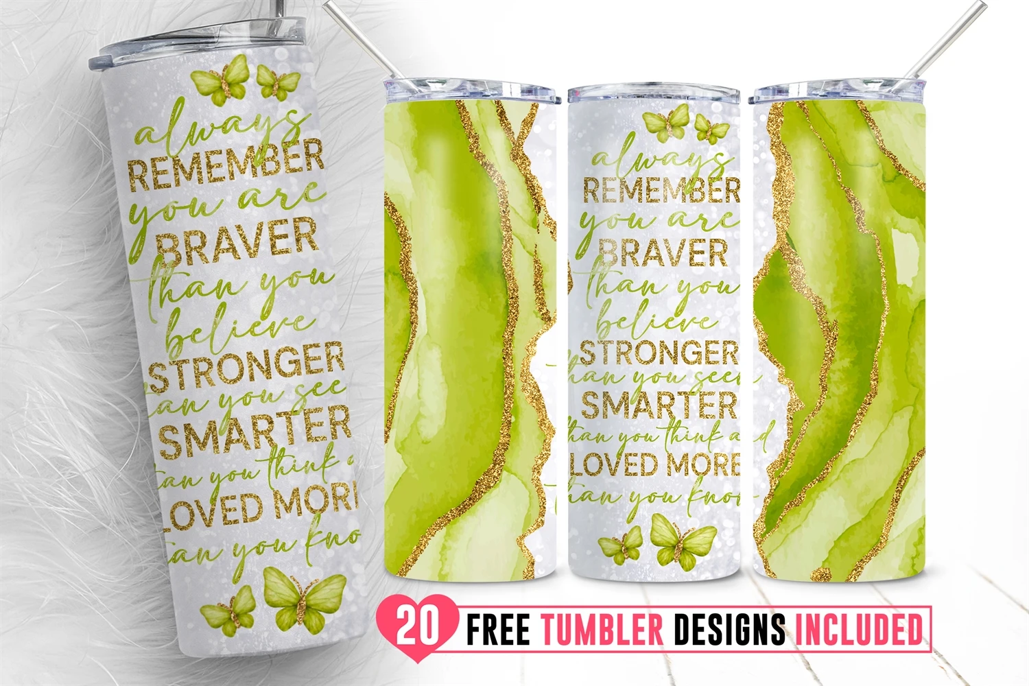 20oz Remember Braver Stronger Skinny Tumbler Sublimation Png