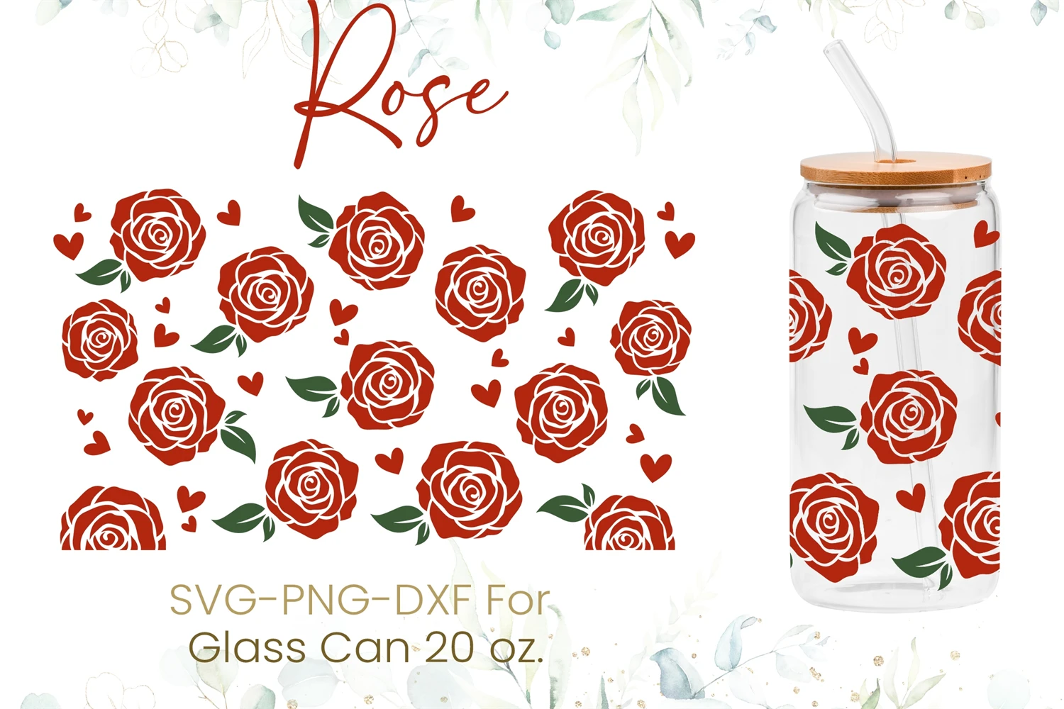 20oz Rose Libbey Glass Can Svg, Roses Coffee Glass Svg,Png