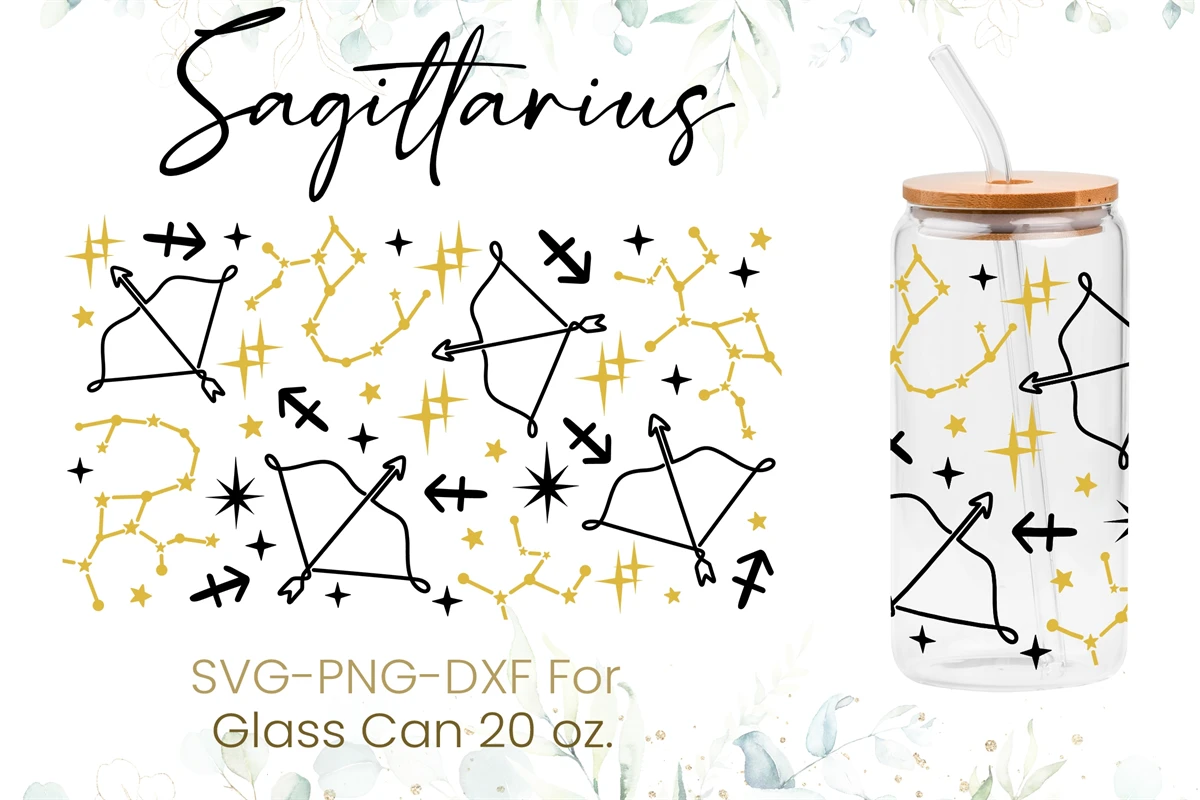 20oz Sagittarius Libbey Glass Can Svg, Zodiac Sign Glass Can