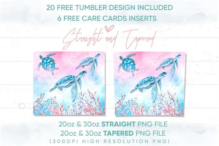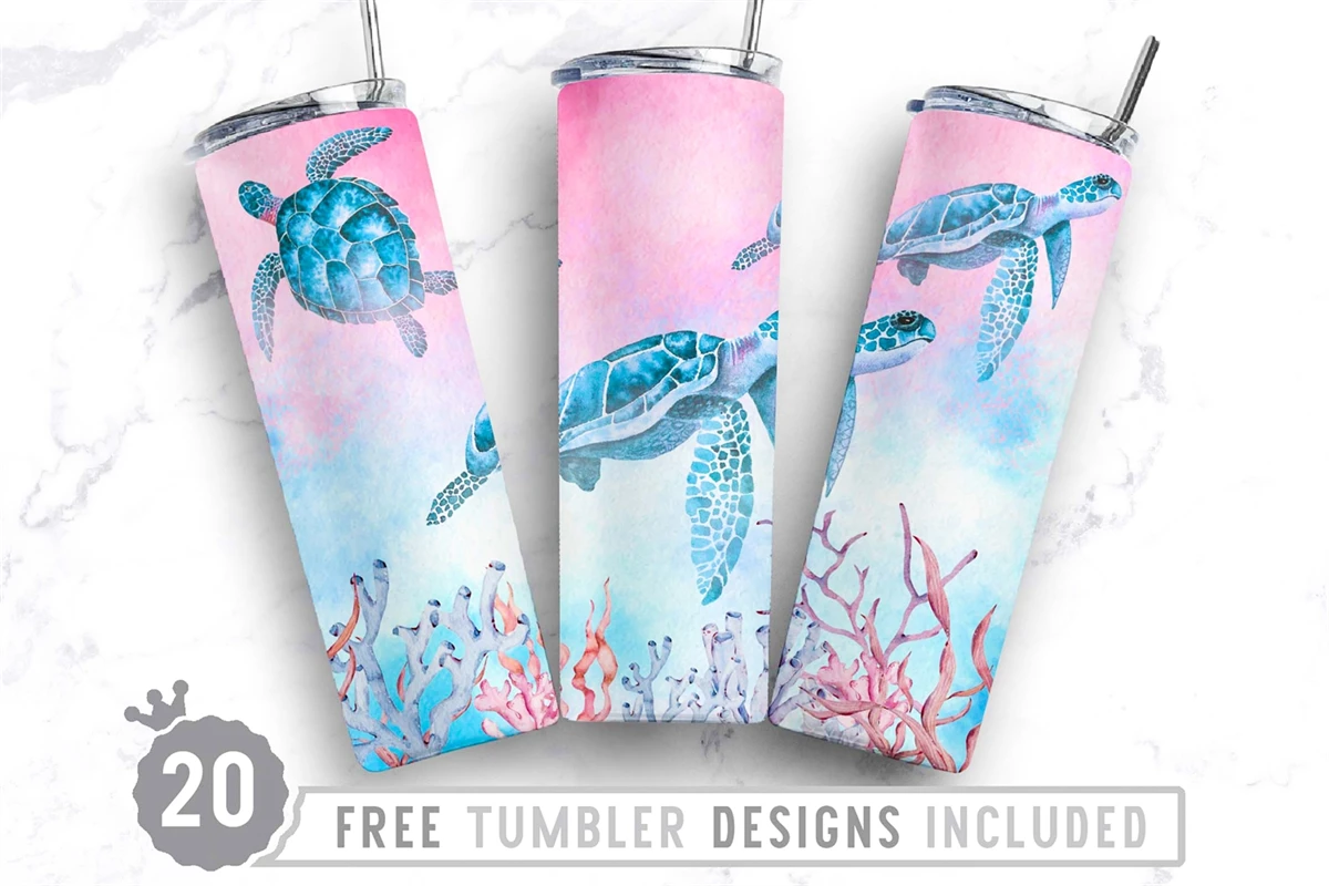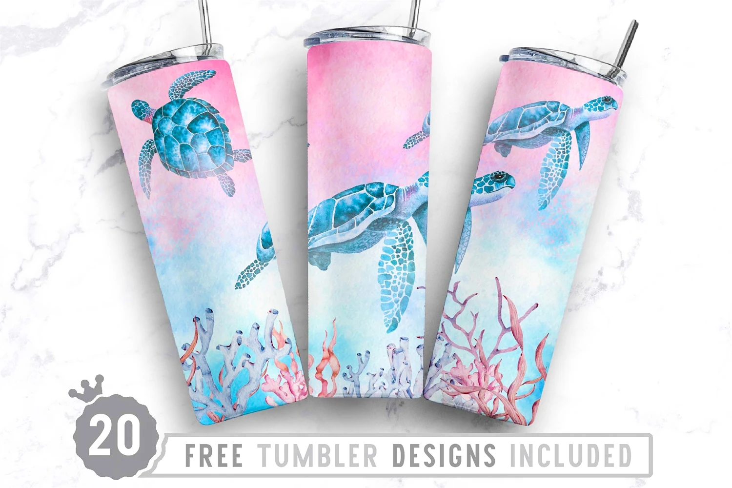 20oz Sea Turtles Skinny Tumbler Sublimation Png, Ocean Life