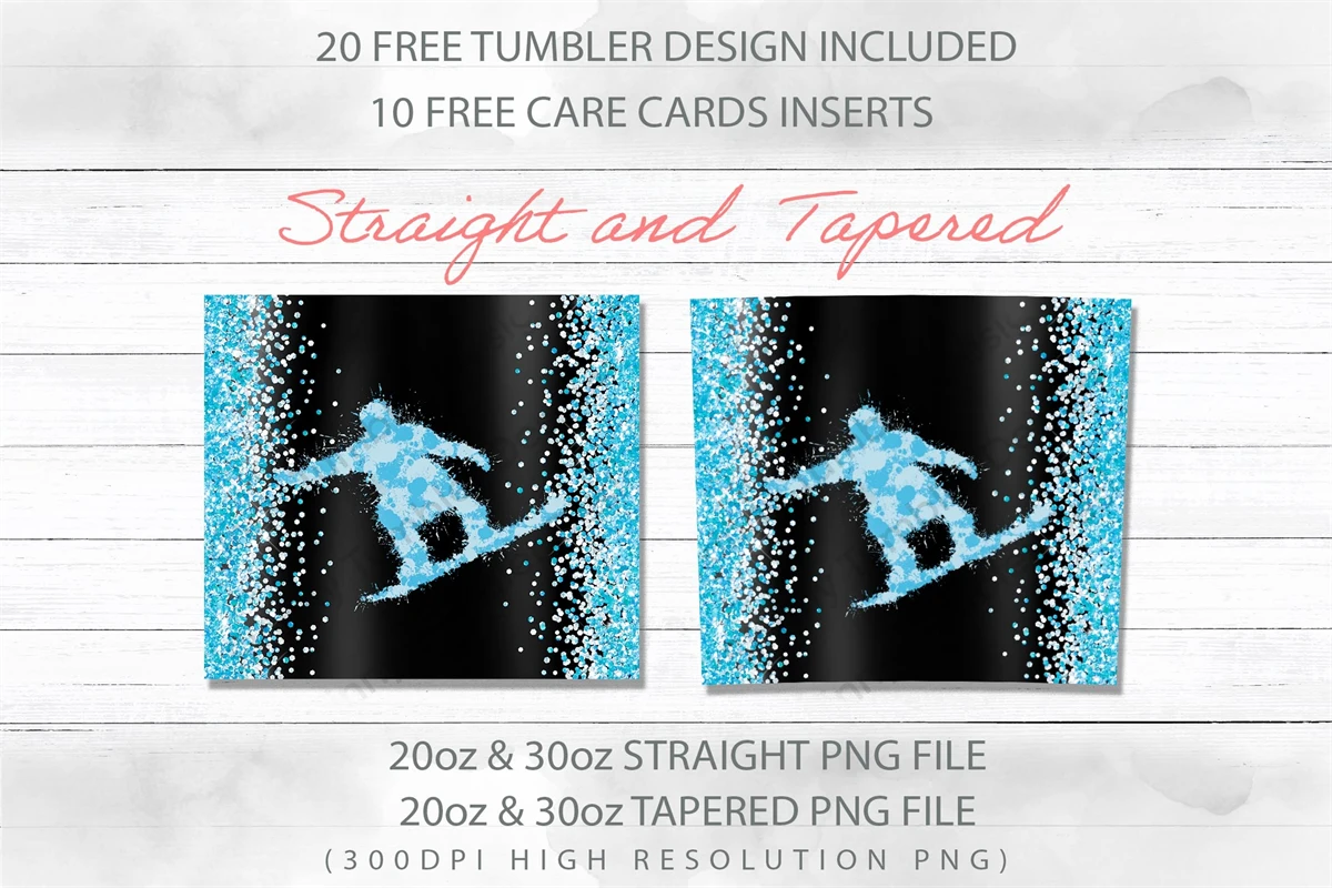 20oz Ski Glitter Skinny Tumbler Wrap Png, Mountain Adventure