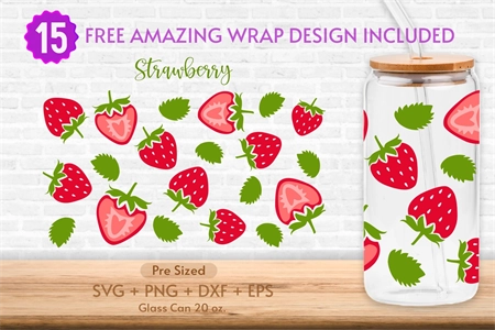 20oz Strawberry Libbey Glass Can Svg, Strawberry Glass Can