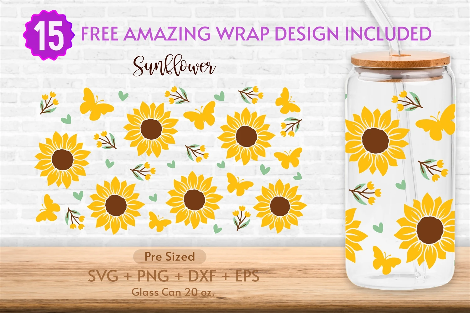 20oz Sunflower Libbey Glass Can Svg,Sunflower Hearts