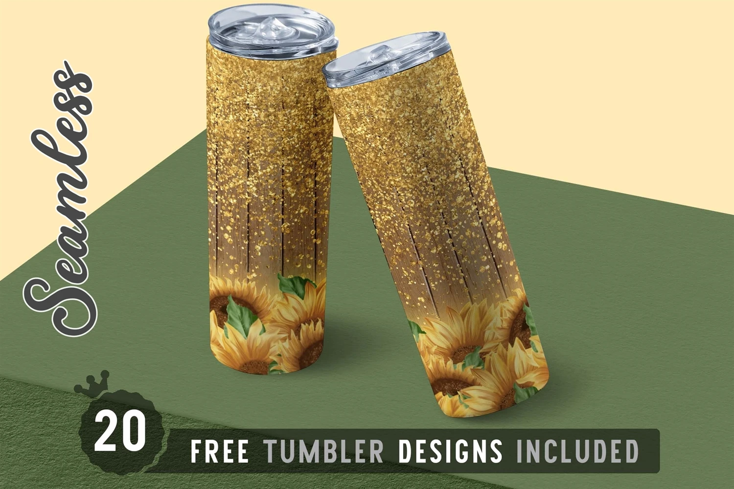 20oz Sunflower Skinny Tumbler Sublimation, Straight Tapered