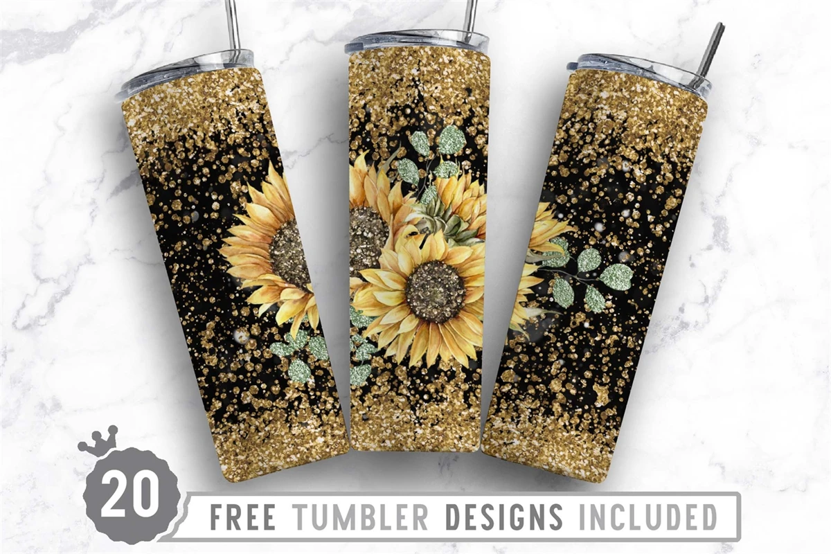 20oz Sunflower Skinny Tumbler Sublimation, Straight Tapered