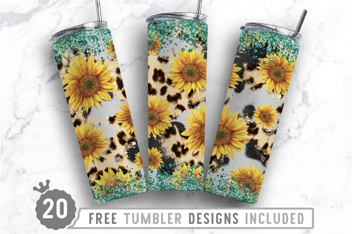 20oz Sunflower Skinny Tumbler Sublimation, Straight Tapered
