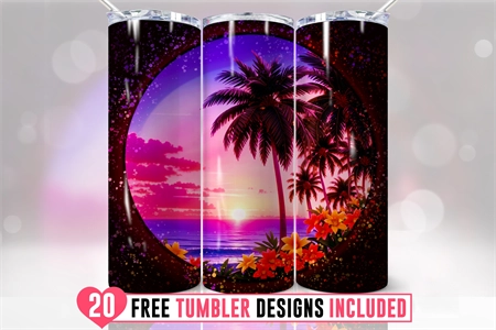 20oz Sunset Beach Tumbler Design Wrap, Sunset Sublimation