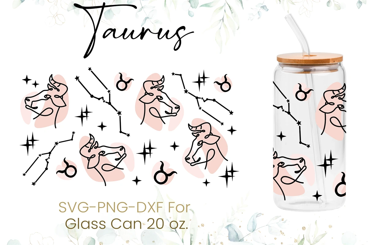 20oz Taurus Libbey Glass Can Svg, Constellations Astrology