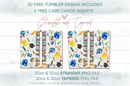 20oz Teacher Skinny Tumbler Sublimation Png,Straight Tapered