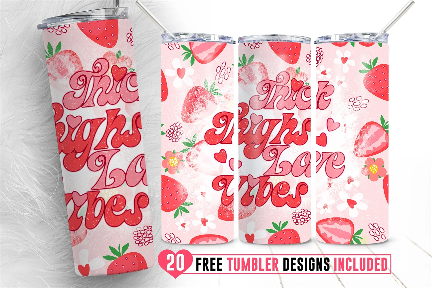 20oz Thick Thighs Love Vibe Skinny Tumbler Sublimation Png