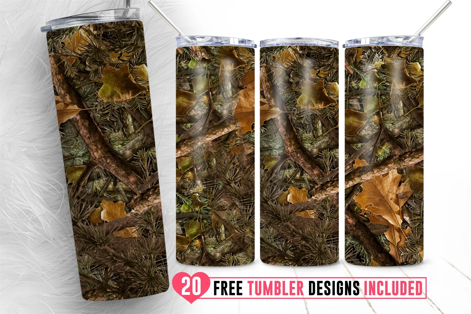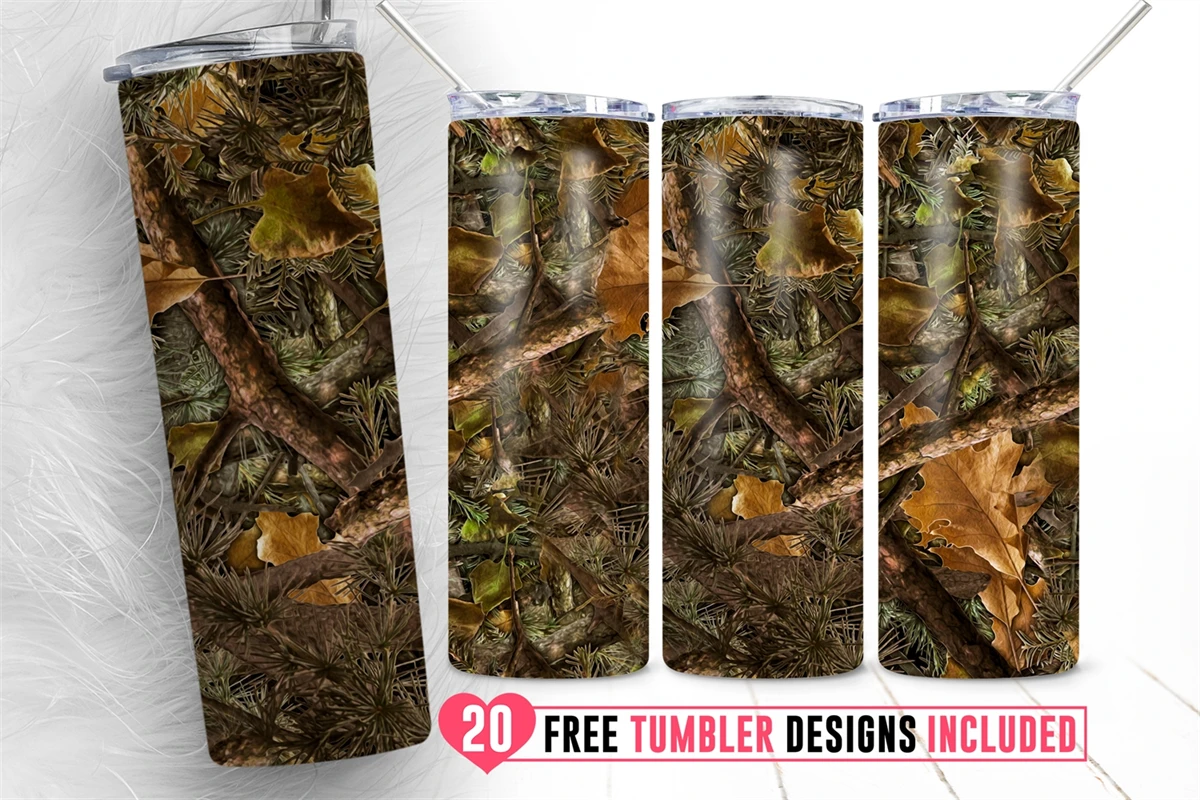 20oz Tree Camouflage Skinny Tumbler Sublimation Wood Forest
