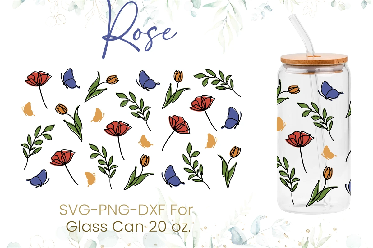 20oz Tulip Flower Libbey Glass Can Svg,Rose Coffee Glass Svg