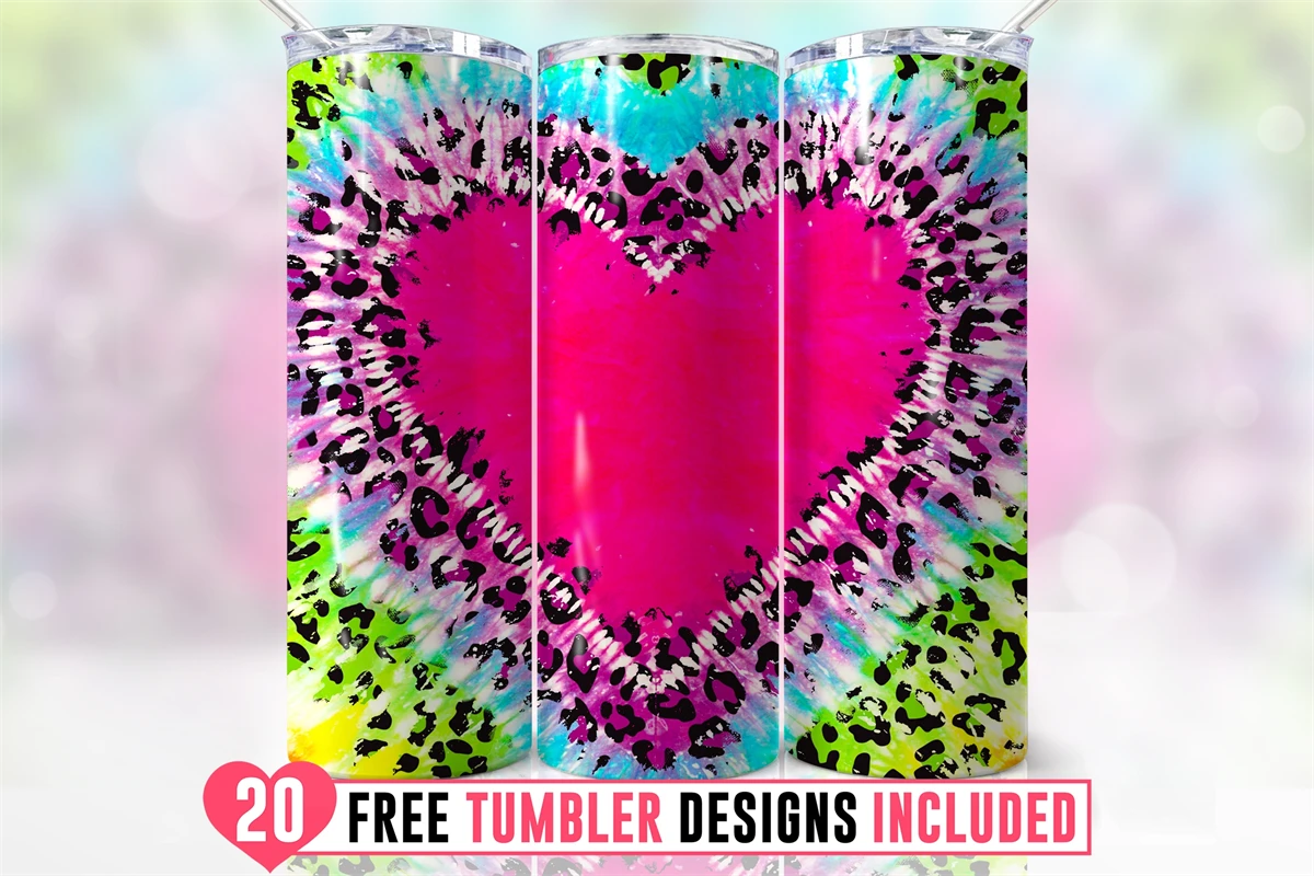 20oz Tye Die Heart Leopard Skinny Tumbler Wrap Png, Pride