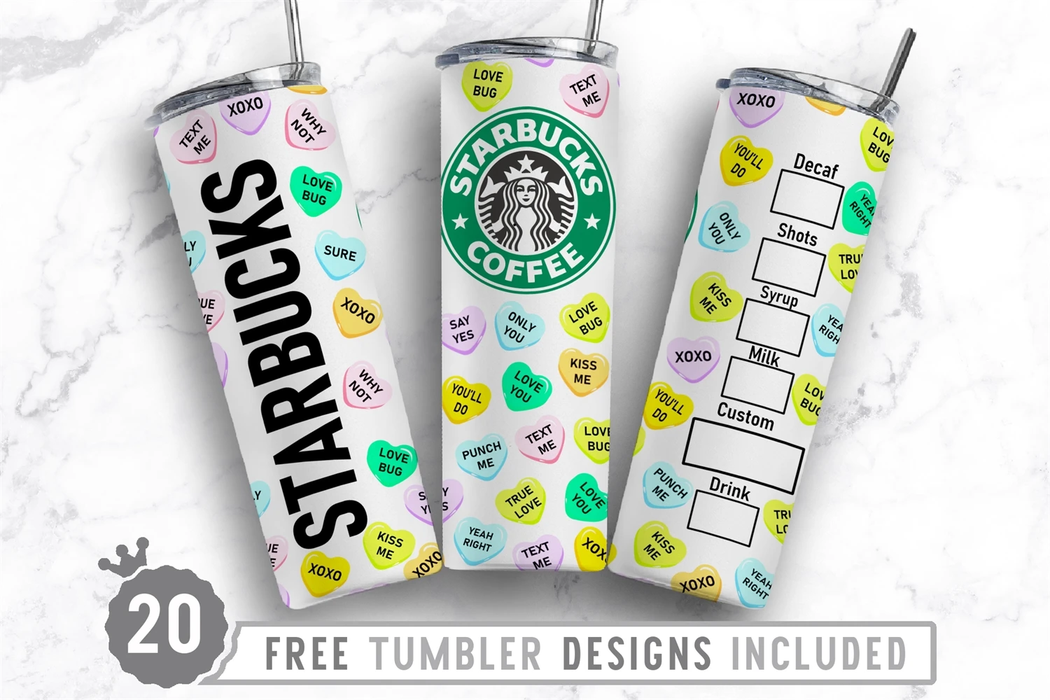 20oz Valentines Day Skinny Tumbler Sublimation Candy Hearts