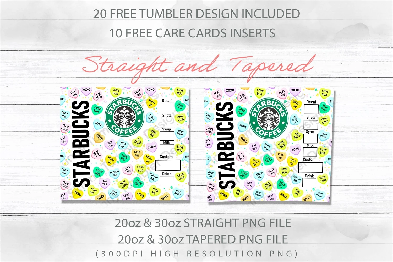 These files are designed to be used on 20oz and 30oz Tumblers (Straight & Tapered).